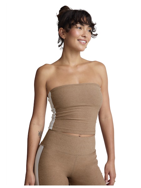Spacedye Line Up Strapless Crop Top - Sand/White