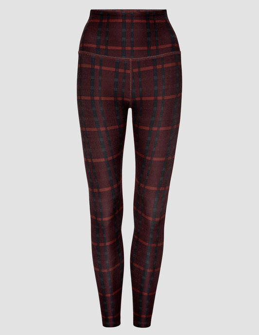 High Waisted Midi Legging - Plaid Foil Burgundy