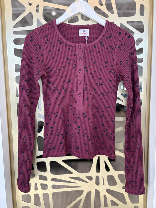 Longsleeve Henley - Stars - Mulled Wine