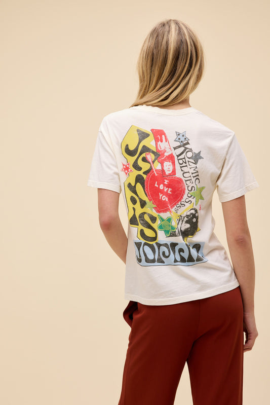 Janis Joplin Scrapbook Art Boyfriend Tee - Stone