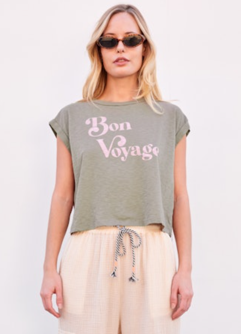 Supima slub soft cotton finds its form in this muscle tee with vintage inspired graphic. A cropped hem frames this modern fit for a silhouette that's chic and strong.