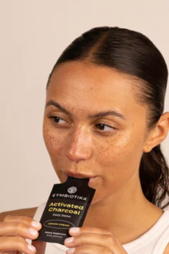 - Cymbiotika’s Activated Charcoal helps cleanse environmental toxins from your body. It is beneficial for alleviating gastrointestinal issues, candida overgrowth, exposure to mold, pesticides, or pharmaceutical residues. This supplement is perfect to take while traveling, dining out, or after consuming alcoholic beverages.