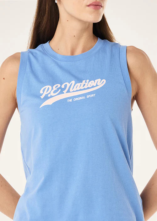 The Formation Tank in Summer Sky is crafted from 100% cotton. This tank features a P.E Nation seasonal graphic print at center front. Wear yours with active leggings or shorts for an easy athleisure look.