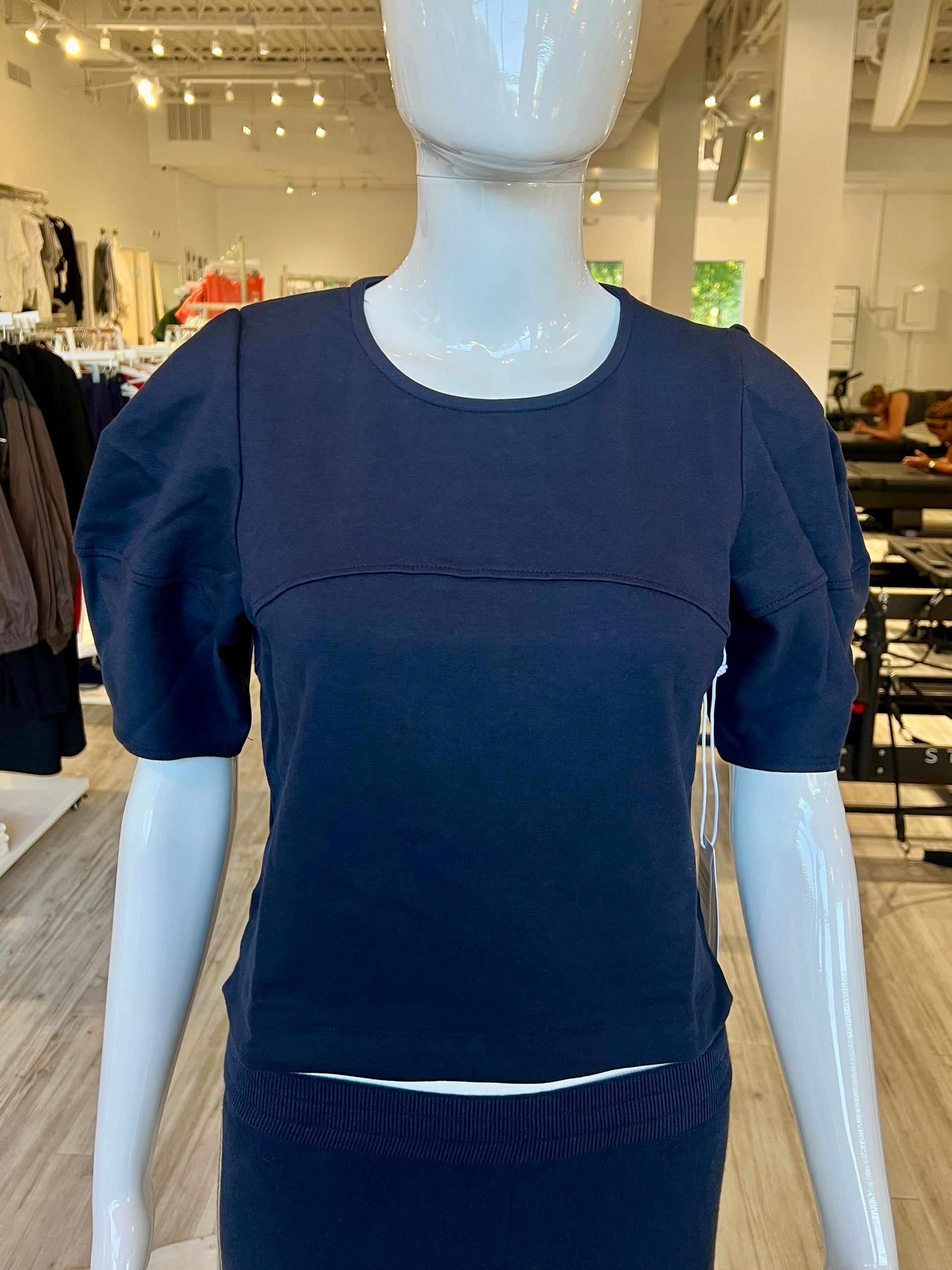 Luxe Ponte Lantern Sleeve Top - New Navy