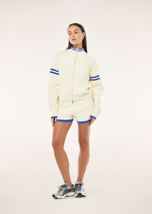 The Odyssey Knit Cardigan in Whisper White is made from a new cotton waffle knit fabrication designed for effortless everyday wear. Designed with movement and style in mind, it features a zip through front, contrast stripes on sleeve and neck and branding metal logo patch at cuff. Coordinate with the Odyssey Knit Set for a modern, on-the-move look.