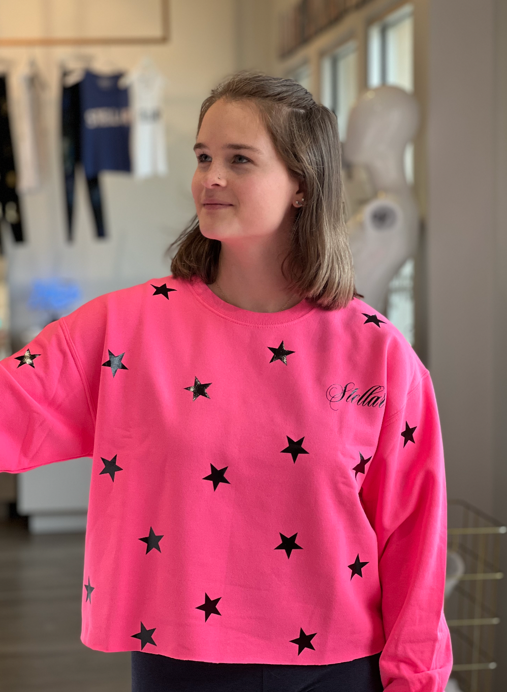 Show your Stellar love with this pop of pink foiled star sweatshirt! Perfect for throwing on before or after your workout and any day in between.