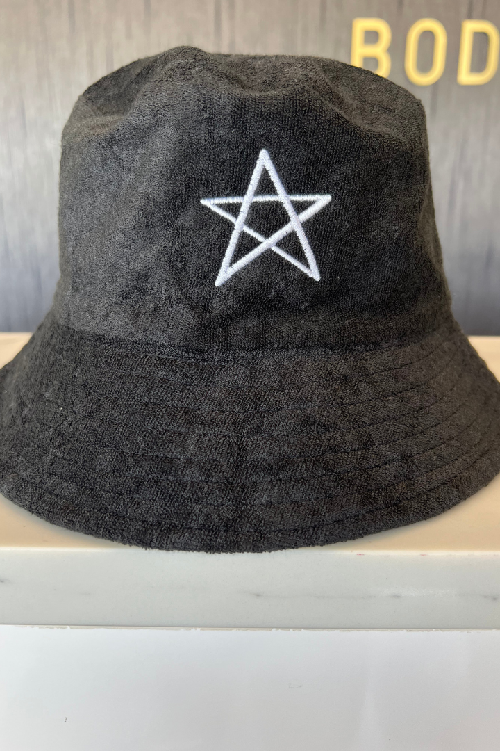 Matte Terry bucket style hat in matte black. Simple star logo on the front and plain on the back. unisex