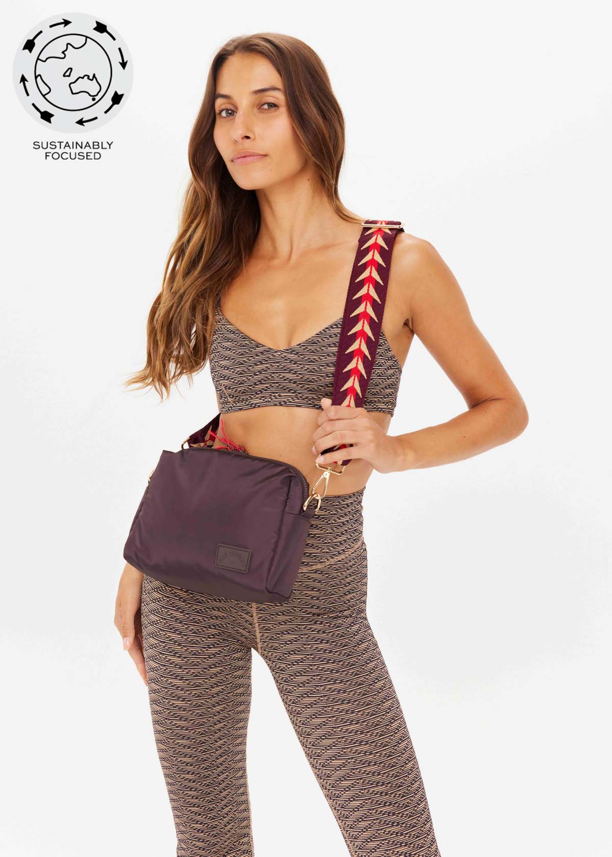 Recycled Polyester crossbody bag in a deep chocolate